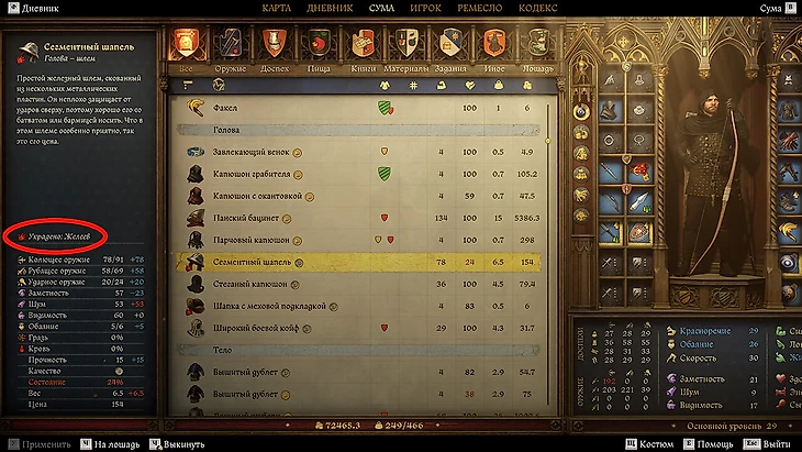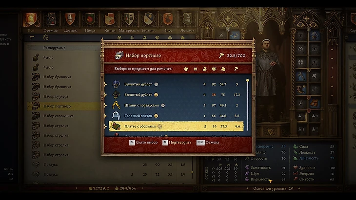 Второй способ чуть более интерактивный. Выкупите у портных, кузнецов и сапожников все наборы для починки снаряжения и отправляйтесь в небольшой город. Под покровом ночи нужно заглянуть во все сундуки и украсть из них поврежденные вещи. Перед продажей почините их.