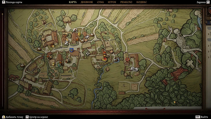 Есть долгий способ для тех, кто не собирается воровать. Для AFK-прокачки незаметности полезайте в дом, где уже нет жителей (погибли по квесту). Например, в Тросковице пустует дом Романа после задания по поиску Павлены – забирайтесь на чердак и сидите там. А в моменты, когда нет денег на ночлег, можно даже спать в постели мертвеца без риска быть обворованным. Так можно жить в любом доме, где появляются синие и красные значки частной собственности.