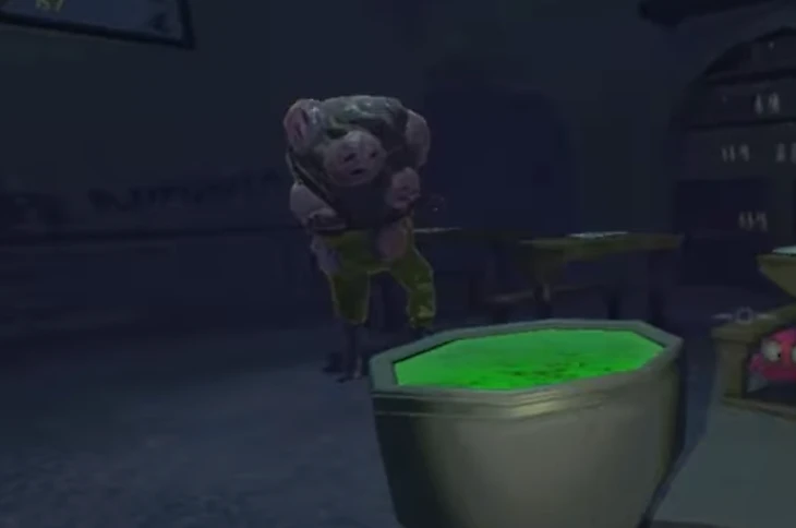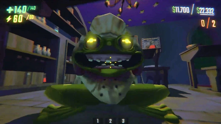 Жаба медлительный враг очень похожий на лягушку, поэтому встречается еще и такое название. Место встречи – второй уровень. Изначально его поведение не вызывает опасности. Он медленно передвигается, улыбается, но потом внезапно бросается на ближайшего игрока, размахивая своими огромными поварскими ножами.