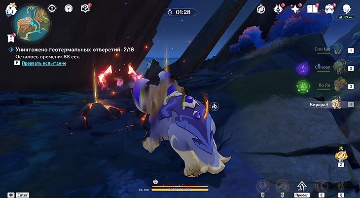 Для этого примите облик Татанказавра и разбейте 18 геотермальных отверстий обычной атакой.