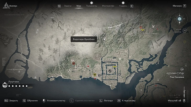 Для начала найдите Мицумунэ. Он в Идзуми-Сэтцу, к северу от Амагасаки, разбил лагерь у водопадов Нунобики. Отправьте лазутчика к этому месту или сразу идите к водопаду.