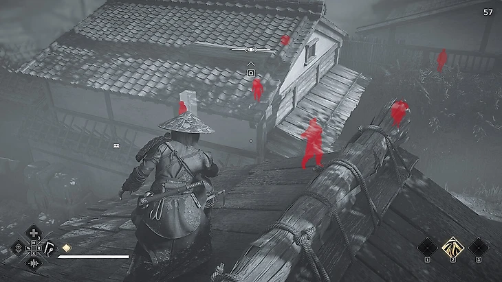 Не забудьте просветить здание, потому что оно хорошо охраняется. Охранник с правой стороны слишком крепкий, так что убить его атакой сзади не получится, поэтому лучше обойти со двора. Стражник, который стоит там, имеет всего один сегмент здоровья и время от времени отходит. В этот момент его можно убить кунаем или внезапной атакой. После этого прокрадитесь в дом и заберите статуэтку и содержимое сундука.