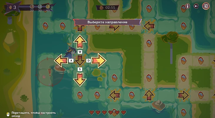 ● Вам нужно прокладывать маршрут и менять указатели на перекрестках, чтобы завриан добрался до сокровищ.