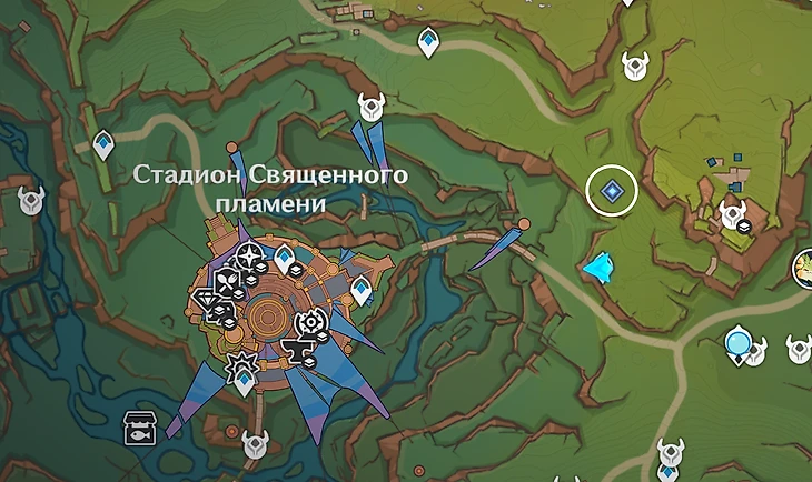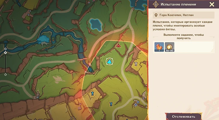 Также заряд помогут набрать испытания племени. На карте помечены отдельно: