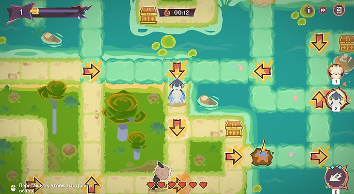 Задача – собрать 6 сундуков, избегая хиличурлов.