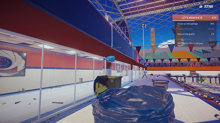 Главная находка Sports: Renovations – иммерсивность. Игра не выедает мозг непосильными задачами и не заставляет вычищать объекты до последнего пятнышка, зато часто радует небольшими приколами. Например, можно кидаться мусорными пакетами в баки на дальность.