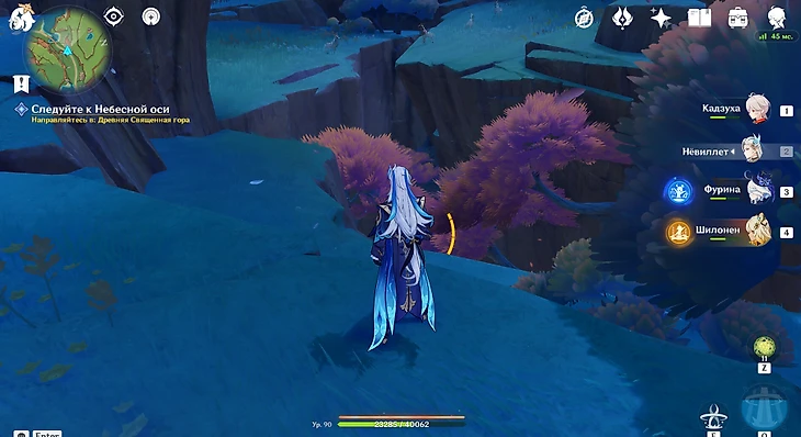 От места телепортации вам предстоит двигаться по извилистой дороге, которая ведет вперед. Следуя по этому пути, вы достигнете примечательного места – небольшого, но достаточно глубокого ущелья. Здесь потребуется осторожность: для безопасного спуска рекомендуется использовать планирование, что позволит избежать получения урона от падения.