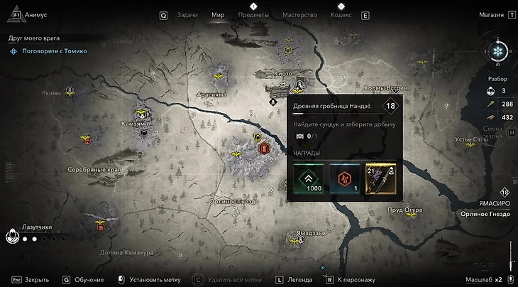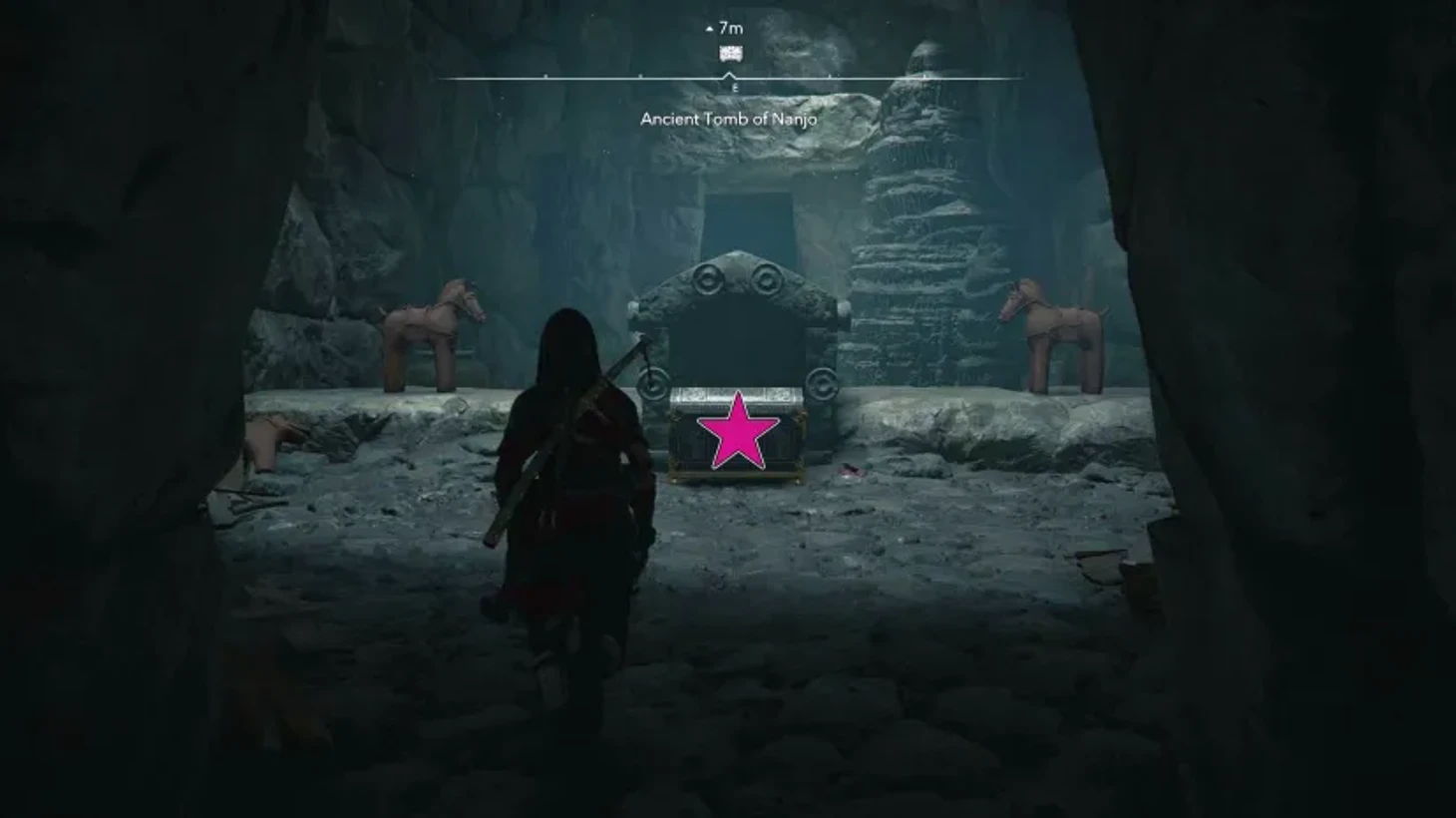 В Assassin’s Creed: Shadows древняя гробница Нандзе находится в регионе Ямасиро, к юго-западу от Киото. Ориентиром для поиска служит точка синхронизации «Забытая пагода», расположенная немного левее и ниже Киото. Внутри гробницы находятся ценные сундуки, но маршрут усложнен многочисленными развилками и ловушками. В конце пути спрятан легендарный сундук с редкой наградой.