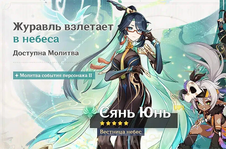 Вестница небес Сянь Юнь представляет собой нового персонажа стихии Анемо, вооруженного катализатором. Ее основная роль в команде – вспомогательный боец или персонаж поддержки. Она обладает способностью усиливать атаки в падении и создавать элементальную реакцию Рассеивание.