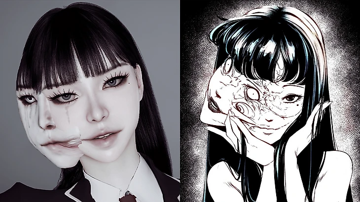 Работа игрока R4milia не менее заметная: он воссоздал Томиэ из коллекции ужасов японского автора манги Дзюндзи Ито. Комментаторы оценили: «Я впечатлен, но, пожалуй, больше никогда не хочу это видеть, сис», – пишут под постом.