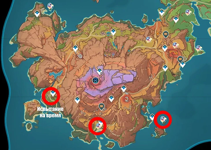 Чтобы открыть испытание вверху справа, выполните неотмеченный квест по поиску заврианов. Нужно выполнить все загадки, включая сундук, маниту и пушку драконового источника, привести их к хозяину, и тогда он станет доступен для испытания.