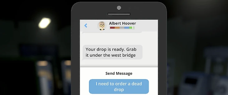После оформления заказа Альберт назовет предполагаемое время доставки, затем отправил еще одно сообщение с точкой тайника. Каждый раз точки могут быть разными – на карте они отмечены темным затемнением. Отправляйтесь в тайник и заберите посылку.