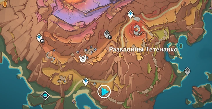 Когда откроете Древнюю священную гору и окажетесь в Зале Призыва, подберите «То, что когда-то было Эекатлем». Оболочка механизма поможет разблокировать скрытый проход у Полей падающих звезд. Вы уже были здесь, если выполняли «Исследователь древних руин» – задание из серии «Записи о заброшенном городе»