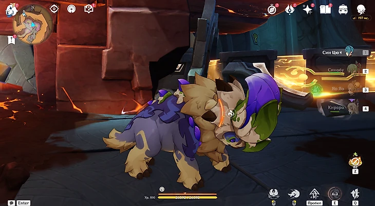 В следующий раз он появится у платформы с механизмом – залезьте голову дракона и активируйте ее, чтобы лава окаменела. Превратитесь в татанказавра рядом и используйте рывок, чтобы разбить ее – пол под вами рухнет. Расчистите проход вокруг дракона навыком (Е).