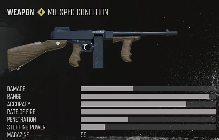 ППШ-41 – это исторический советский пистолет-пулемет, известный своей высокой скорострельностью и вместительным барабанным магазином. В игре он представлен как оружие с отличной дальнобойностью и точностью, что делает его эффективным на средних дистанциях.