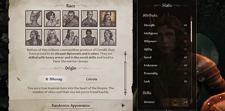 1. У каждой расы появилась вкладка с происхождением. Она не только позволяет улучшить ролевой отыгрыш для людей, знакомых с лором, но и добавляет немного лишних статов. Например, данмер из Вварденфелла получает 40 выносливости и 30 обаяния, а данмер, родившийся на материке, – 30 выносливости и 40 обаяния. Так разработчики решили две проблемы сразу: убрали разницу между полами (которая давала эти статы в оригинале) и добавили чуть больше отыгрыша.