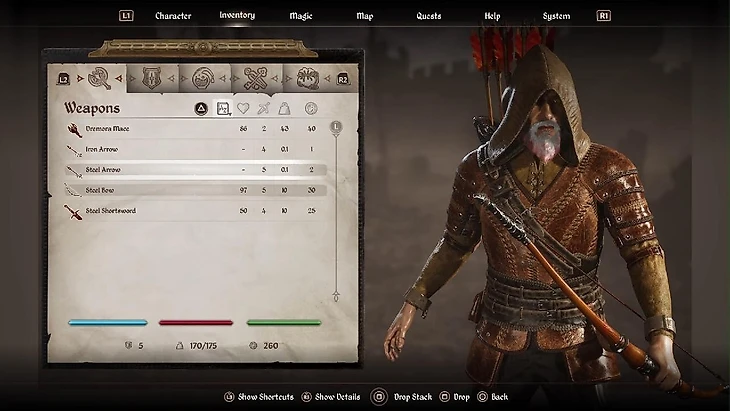 4. Полностью переработали интерфейс, но сохранили уникальный шрифт. Ориентироваться проще – отметки на карте переехали наверх, как в Skyrim и других играх. Теперь, если повернуться в сторону цели, маркер наверху показывает расстояние до нее. Кнопки внизу, которые включали способности, инвентарь и карту, теперь разделены по своим вкладкам. А в инвентаре появилась возможность посмотреть на модельки и покрутить их со всех сторон, как в Skyrim.