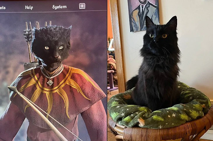К счастью, за 20 лет технологии шагнули вперед. Перенос графики на Unreal Engine позволил наконец-то сыграть за каджитов с шерстью и нормальными глазами. Благодаря обновленному редактору реддиторы воссоздали питомцев в игре – даже кошек с редким черепаховым окрасом.