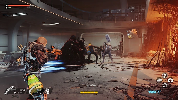 Суть простая. Вы – матерый вояка Ли Морган. Впереди башня со множеством этажей, на каждом десятки агрессивных ублюдков: обдолбанные рейдеры, кошмарные мутанты, бронированные роботы. Повсюду камеры, которые превращают восхождение в телешоу с комментариями ведущего. Задача – идти вперед и убивать.