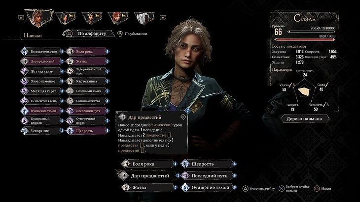 Уникальная механика: первая особенность механики героя – предвестия. Некоторые навыки накладывают на врагов особые метки, а другие – поглощают их, усиливая урон или предоставляя дополнительные эффекты.