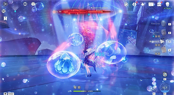 Заменяйте персонажей на тех, кто у вас есть – вместо Фурины можно взять Син Цю или Е Лань (если это не команда Гань Юй через заряженные атаки), вместо Эскофье – Диону, Шарлотту, Ситлали или Лайлу, а также можно взять Анемо персонажа для рассеивания Крио и Гидро статусов. Фремине и Эола с их командами на физ. уроне тоже подойдут, но во второй фазе возьмите блюдо на воскрешение, чтобы воскресить жертву ваншота.