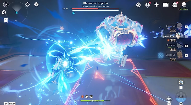 У босса много ограничений: не стоит брать Гидро и Электро персонажей, нельзя брать Пиро персонажей (или можно, если это не основной дпс, и вы не будете атаковать им во второй фазе). Шахматные боссы заточены под Крио с реакцией Заморозка, поэтому стоит взять одну из команд ниже: