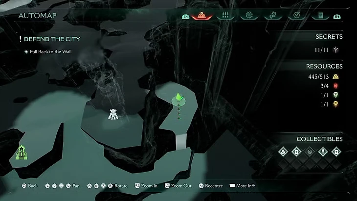 Перед тем как отступить к стене в шестой главе, игроки смогут найти подъемную стену рядом с Храмом Стражей, ведущую к гигантской статуе, с которой открывается вид на поле боя. Игрушка Манкубус расположена между ног статуи.