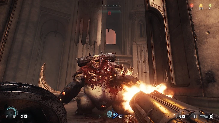 Разработчики отказались от вертикального геймплея, сделали платформинг попроще, а сами локации – побольше. Вдобавок Палач Рока растерял рефлексы (дэши, двойные прыжки и быстрое переключение между пушками остались в Eternal), зато стал мощнее. Теперь это «танк», который несется только вперед и, если надо, прикрывается щитом. Других тактических маневров, по крайней мере поначалу, нет. Только безжалостная агрессия – все по заветам Джона Сины.