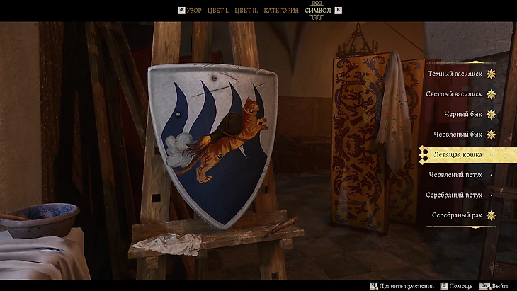 По итогу дополнения мы получаем возможность раскрашивать щиты. Новые раскраски можно получить за прохождение квестов, но и в базовых можно найти что-то забавное. Бедная котя.