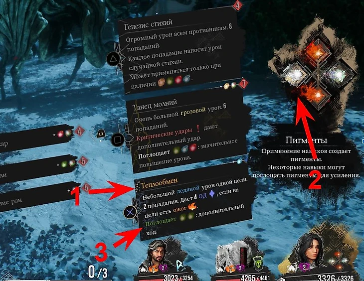 Эта стратегия отлично сочетается с «Напором стихий», который с высокой вероятностью генерирует нужные пигменты. Особенно если вы прокачали Удачу, увеличивающую шанс критических ударов.