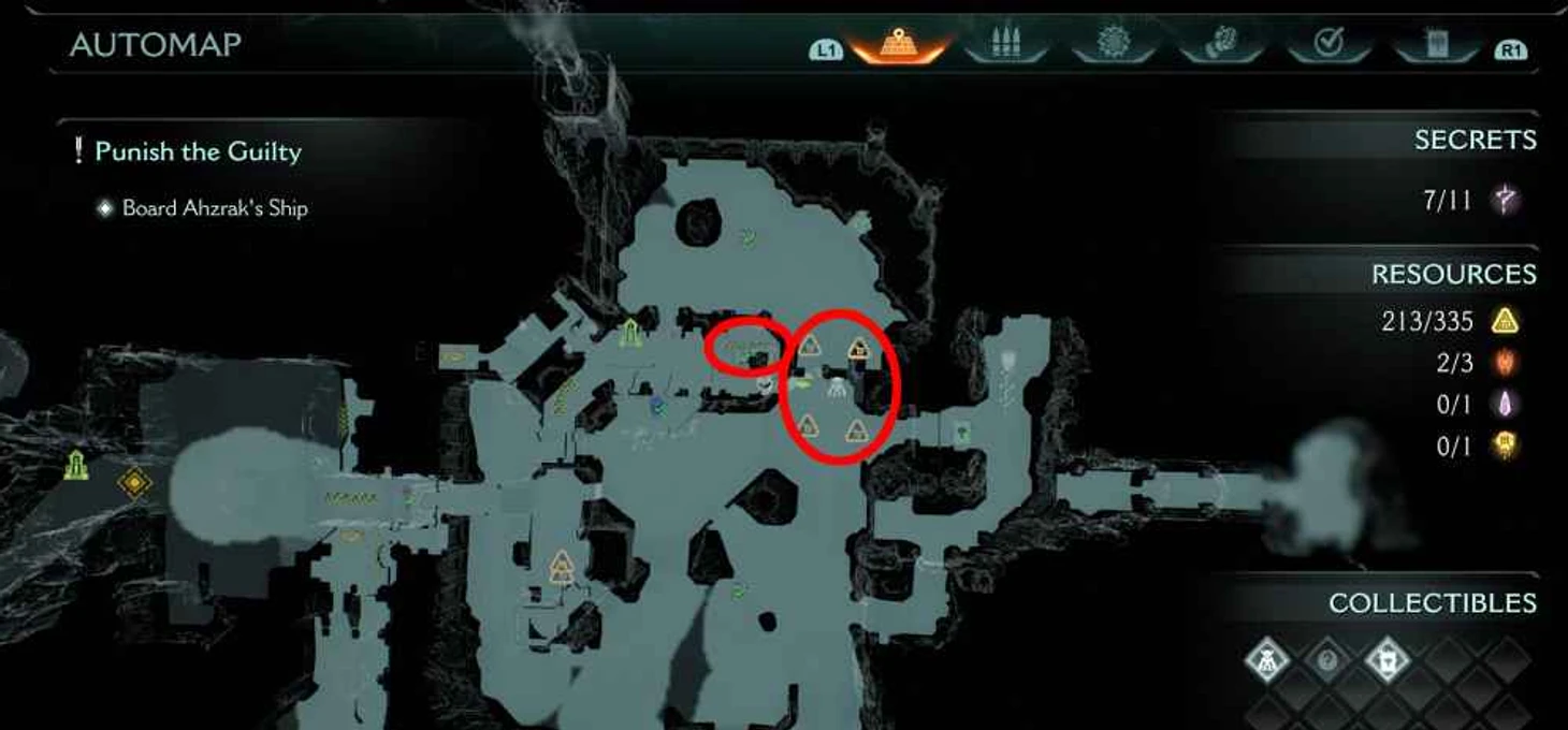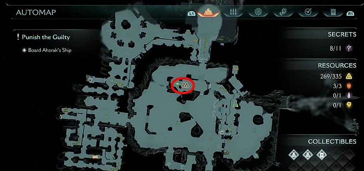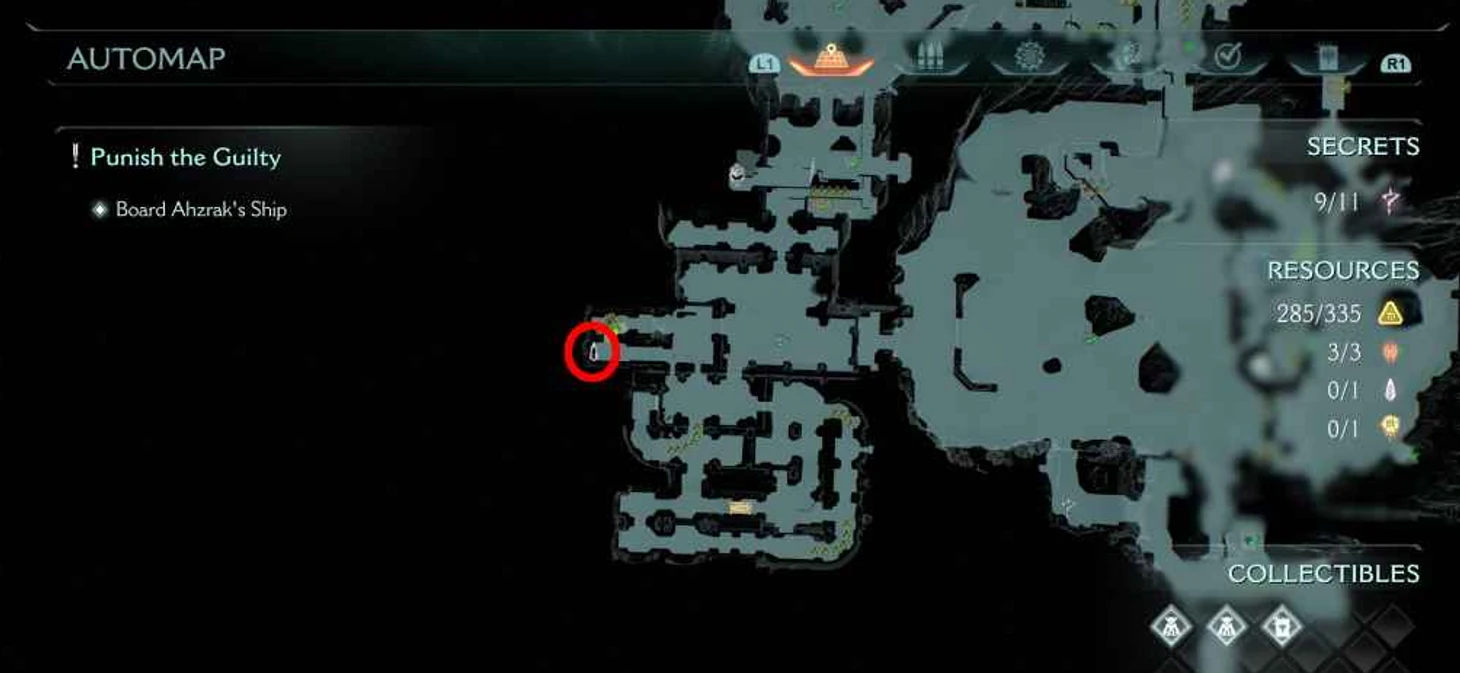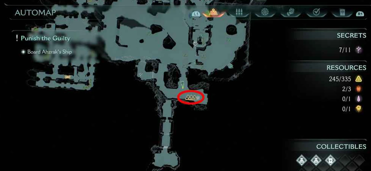 Выйдя из портала, поверните налево к затонувшему кораблю. Внутри ударьте щитом по стене, найдите символ глаза и бросьте щит в него — ворота откроются, и вы заберете сундук.