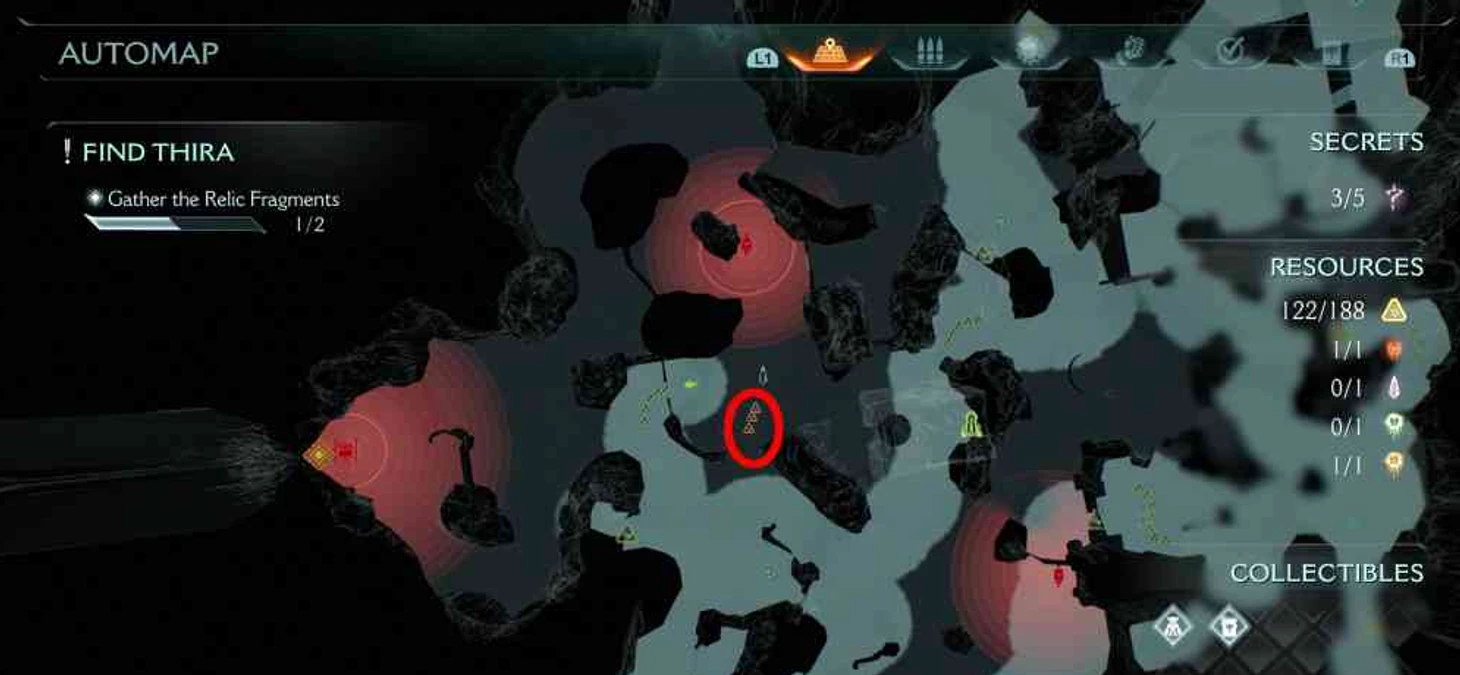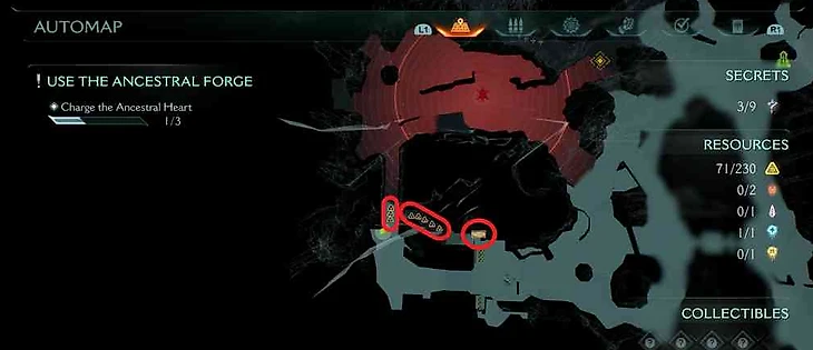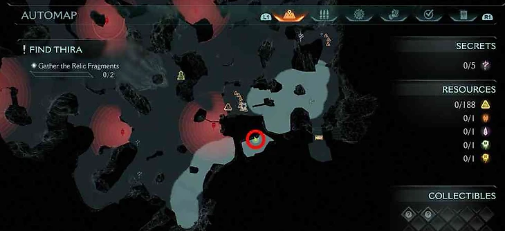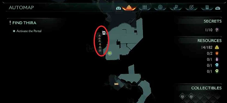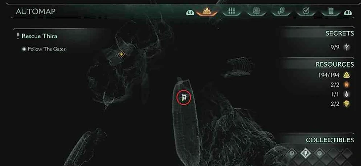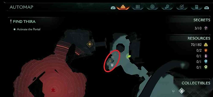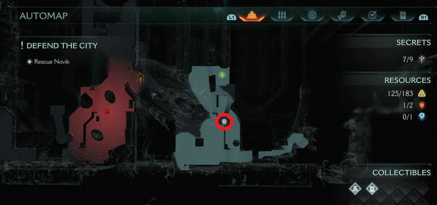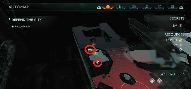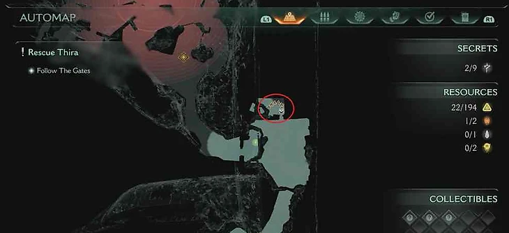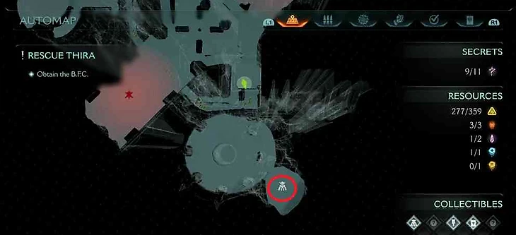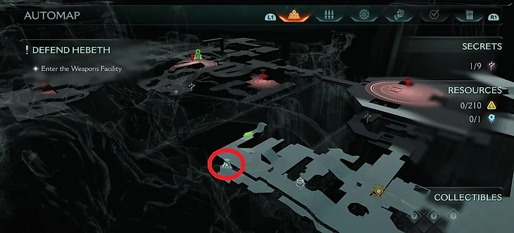После боя с первым красным врагом слева от точки спуска найдите символ жизни — это секрет.