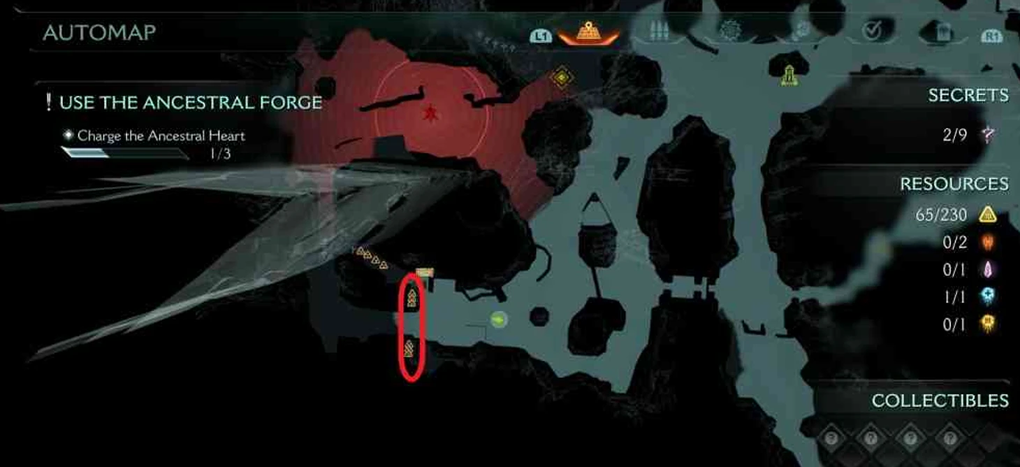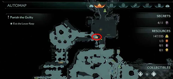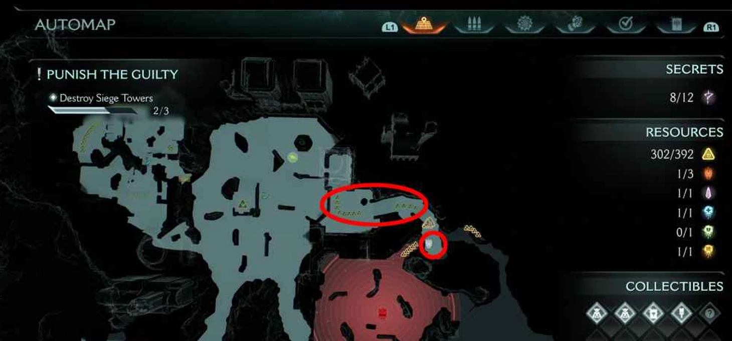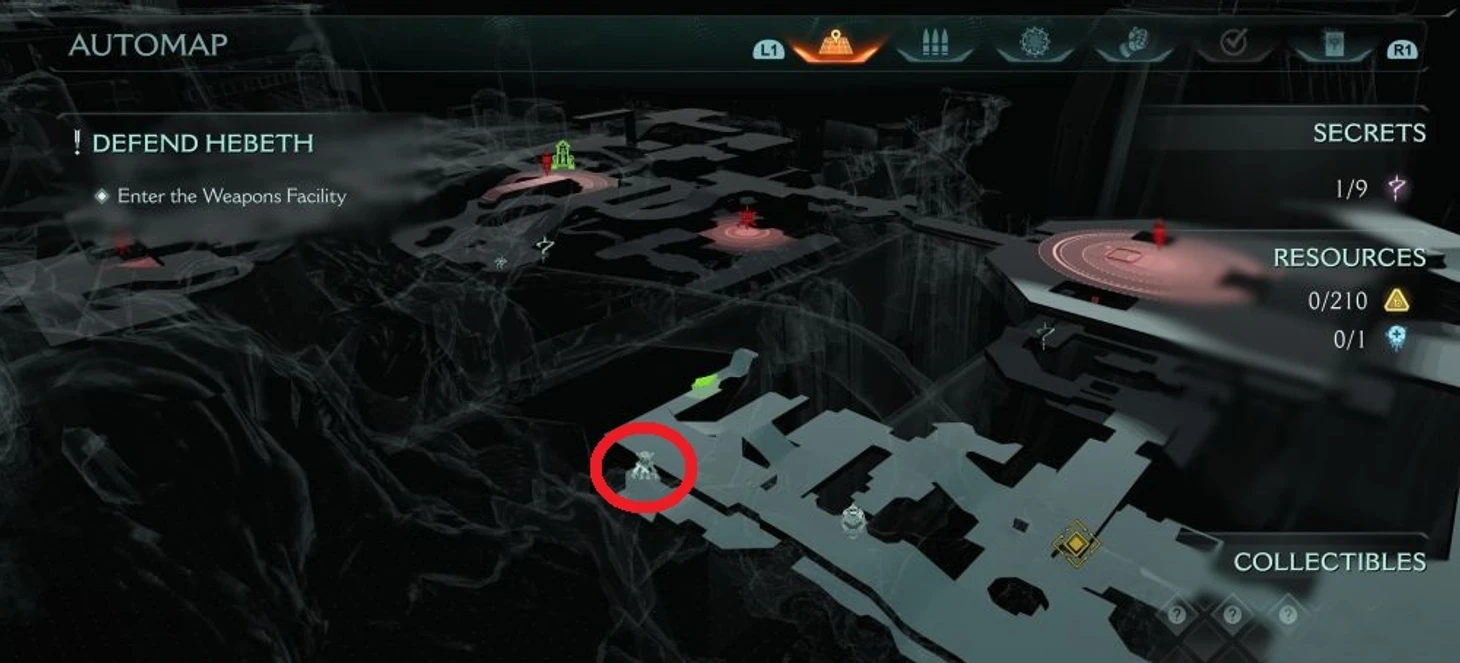 У основания винтовой лестницы проломите стену с помощью щита, после чего метните его в синюю метку. Не теряя времени, поспешите в лифт — на верхнем уровне вас ожидают Камень Призрака и тайный проход.