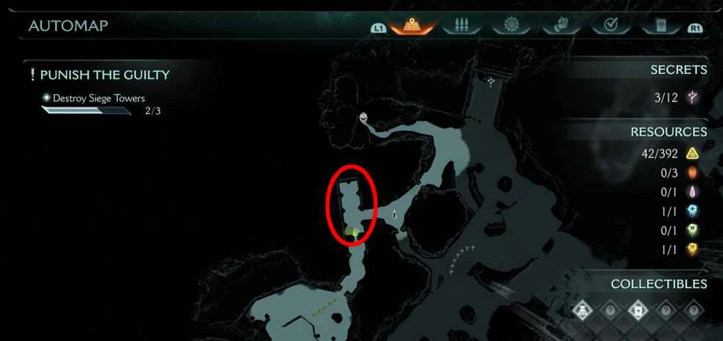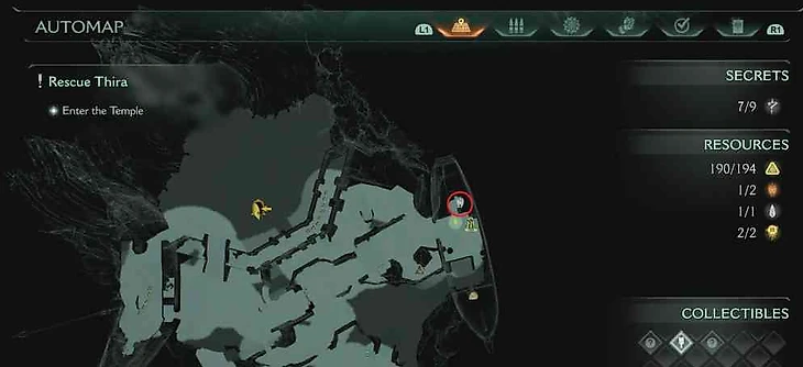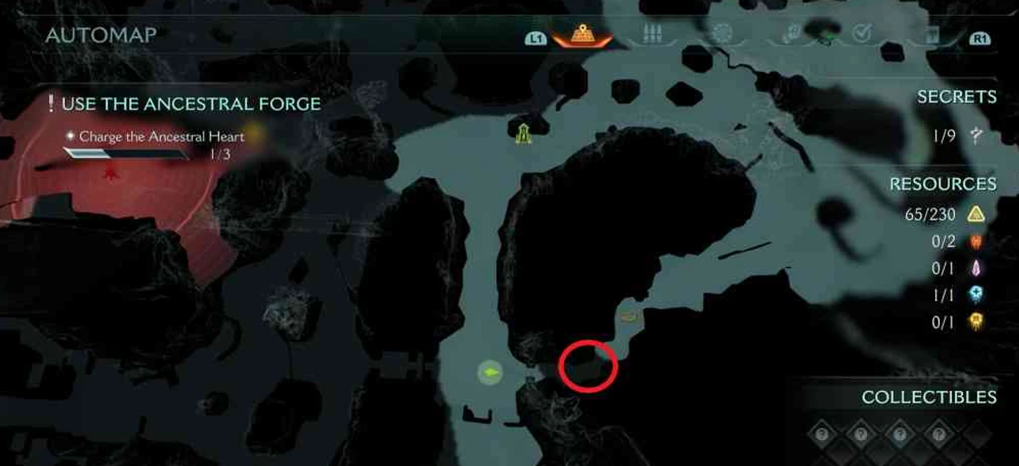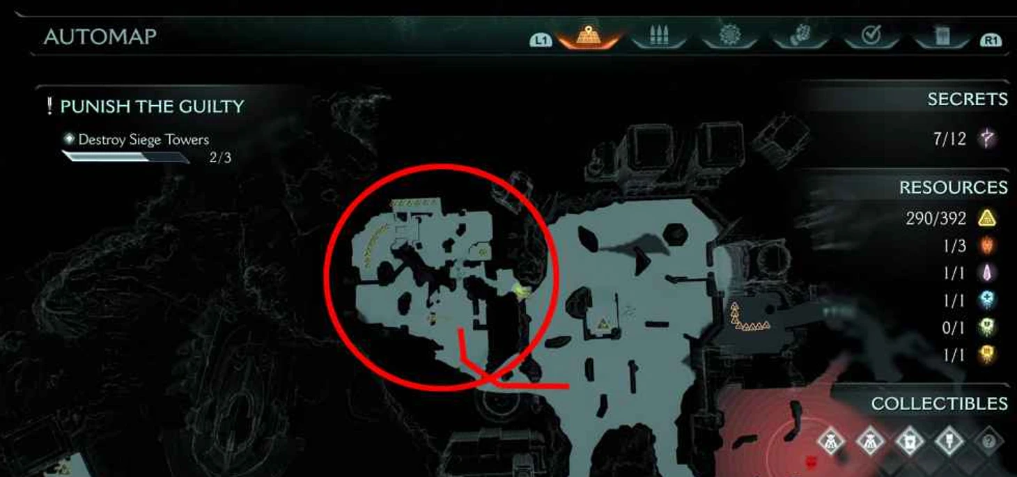 У основания винтовой лестницы проломите стену с помощью щита, после чего метните его в синюю метку. Не теряя времени, поспешите в лифт — на верхнем уровне вас ожидают Камень Призрака и тайный проход.