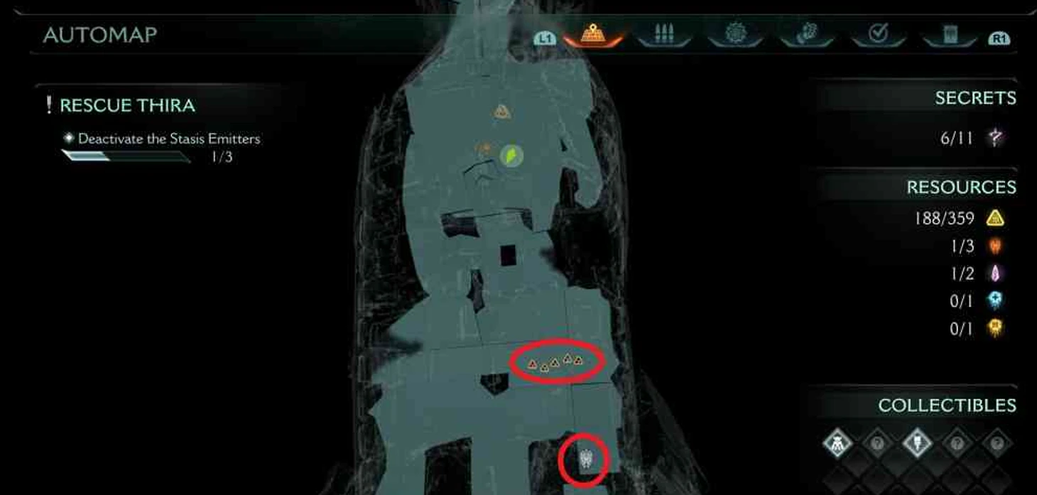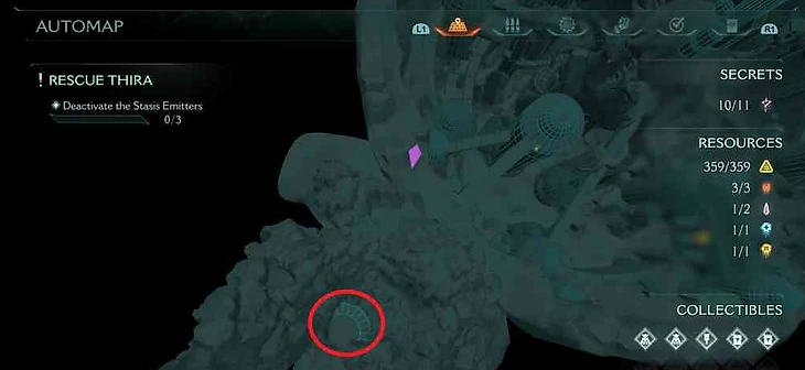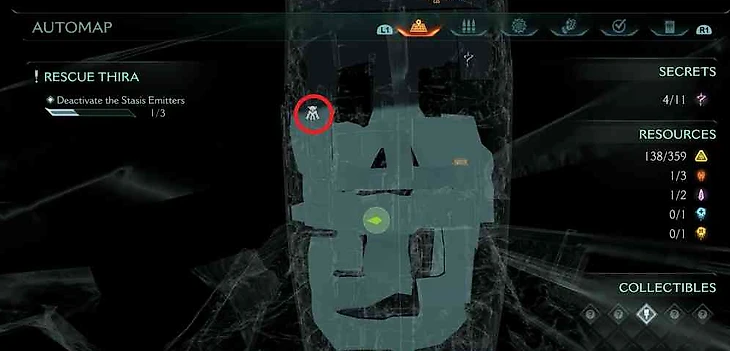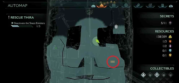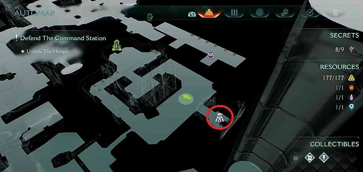 После получения желтого ключа спуститесь и откройте желтые ворота справа — там спрятаны секретный предмет, коллекционная фигурка «Космический барон» и кодекс «Воскрешение».