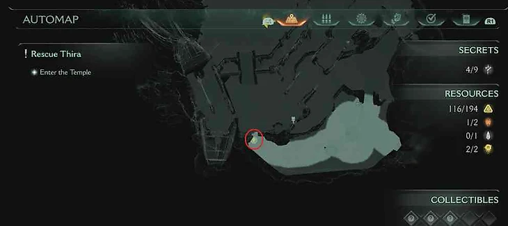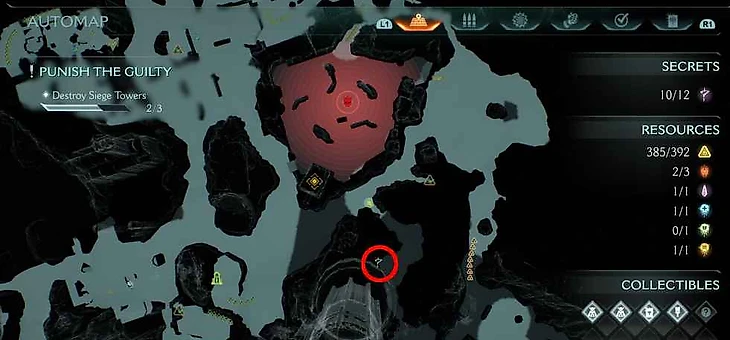 Если вы заглянете вниз с развалин моста и поверните голову налево, то увидите место, куда нужно совершить прыжок. После прыжка соберите золотые монеты, а затем вскарабкайтесь на стену. Двигайтесь по тропинке и преодолейте еще две стены — и перед вами откроется тайник с символом жизни.