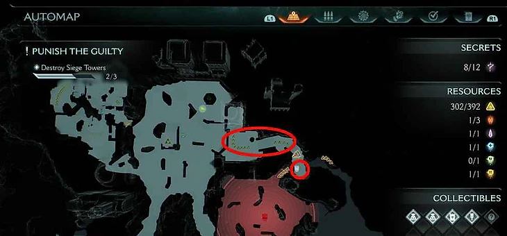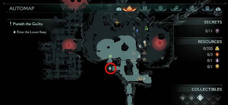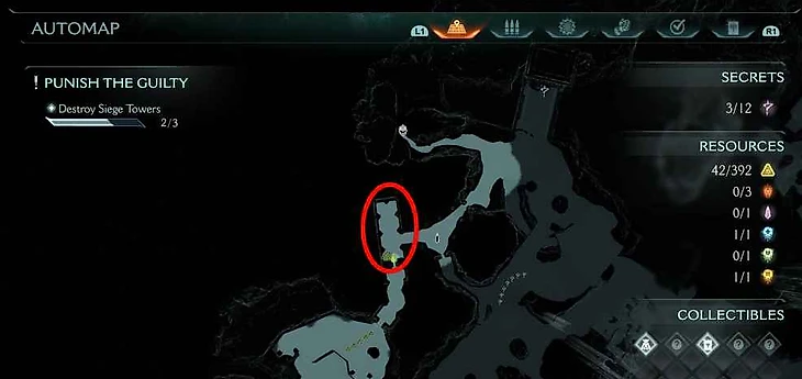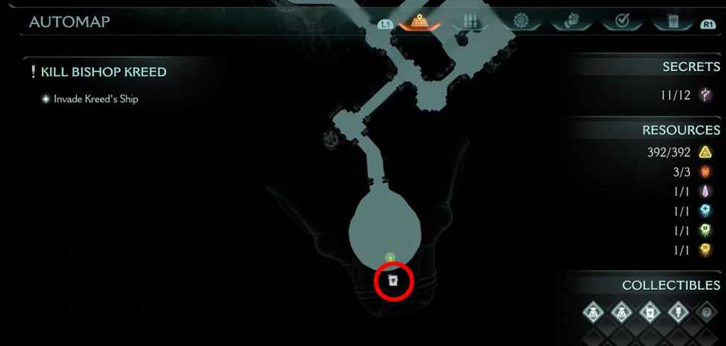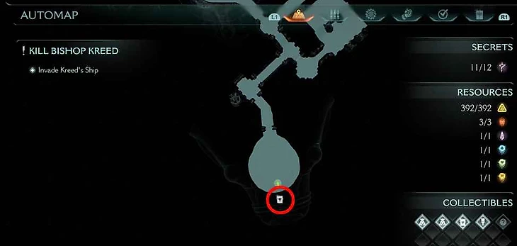 Войдите в дверь ниже коридора, разбейте цепь щитом, толкните ящик и следуйте по тропинке вниз. Здесь найдете секрет с культистами и кодекс, а также столкнетесь с врагами.