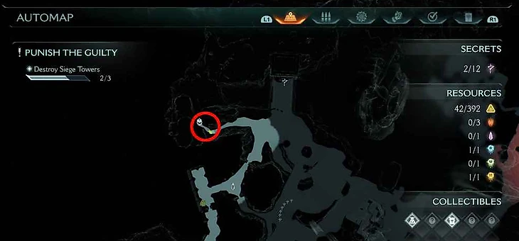 Поднимитесь по стене рядом с золотым секретом, затем по башне и используйте площадку для прыжков. Спрыгните на выступ с осколками брони и перепрыгните на следующий выступ, чтобы добраться до коллекционной игрушки.