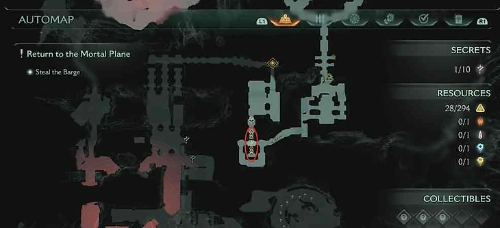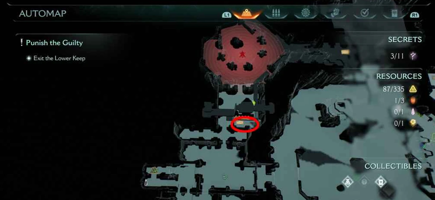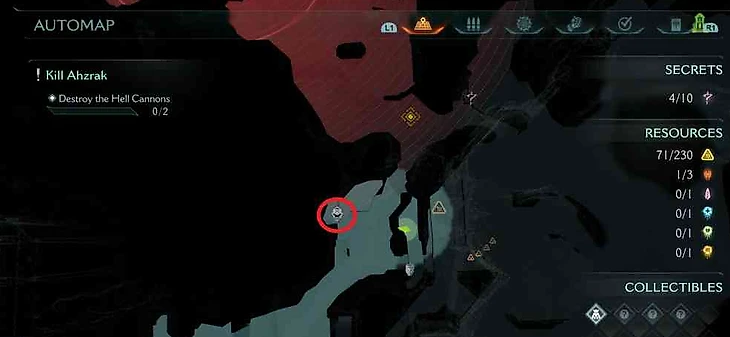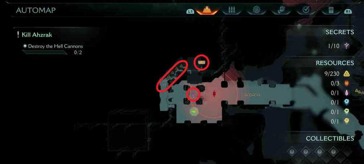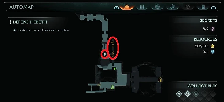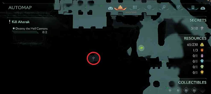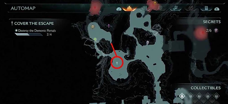 В коридоре, где стоят красные бочки и бродят адские рыцари, после того как вы победите врагов, обратите внимание на левую стену — там вы найдете кнопку. Нажмите ее, чтобы открыть дверь. Затем используйте стену для подъема, поверните за угол и войдите в тайную комнату.
