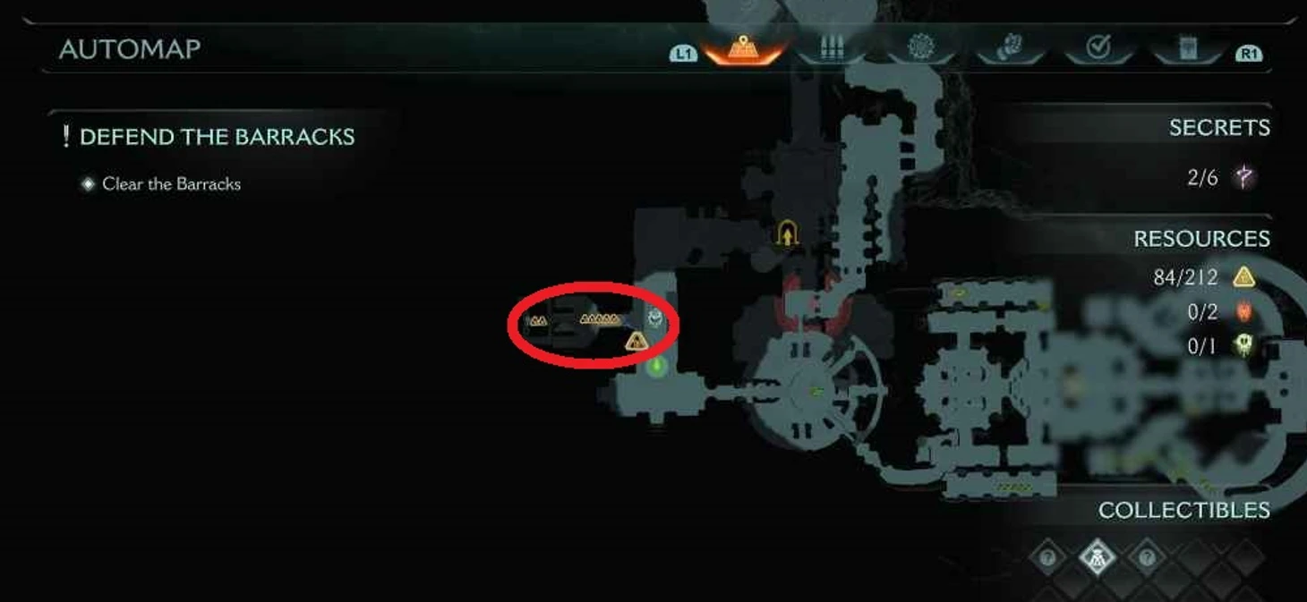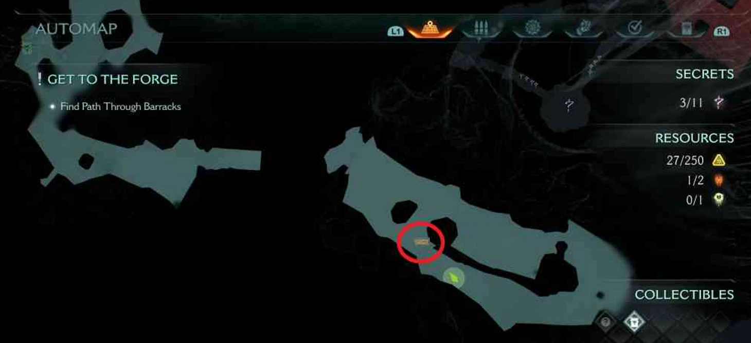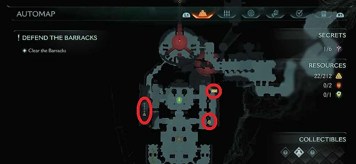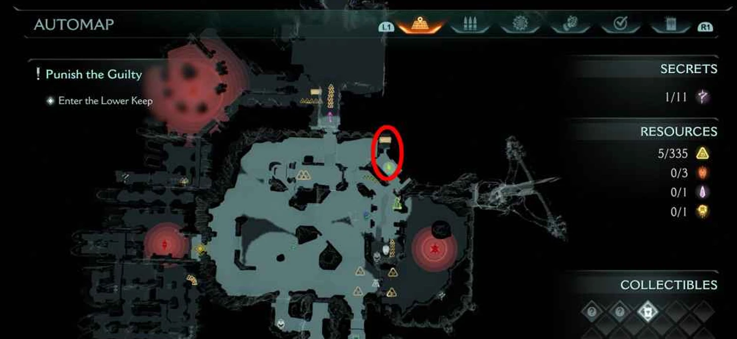В коридоре, где стоят красные бочки и бродят адские рыцари, после того как вы победите врагов, обратите внимание на левую стену — там вы найдете кнопку. Нажмите ее, чтобы открыть дверь. Затем используйте стену для подъема, поверните за угол и войдите в тайную комнату.