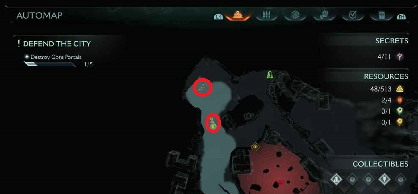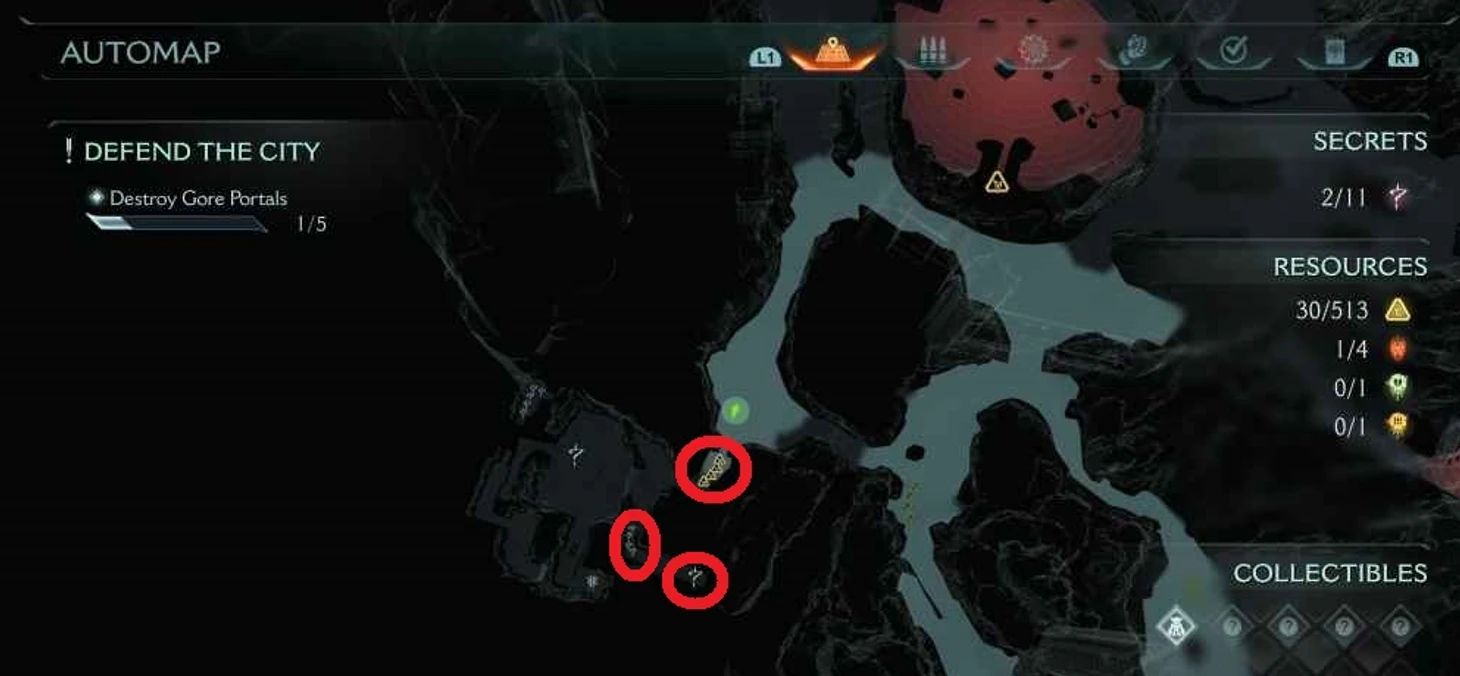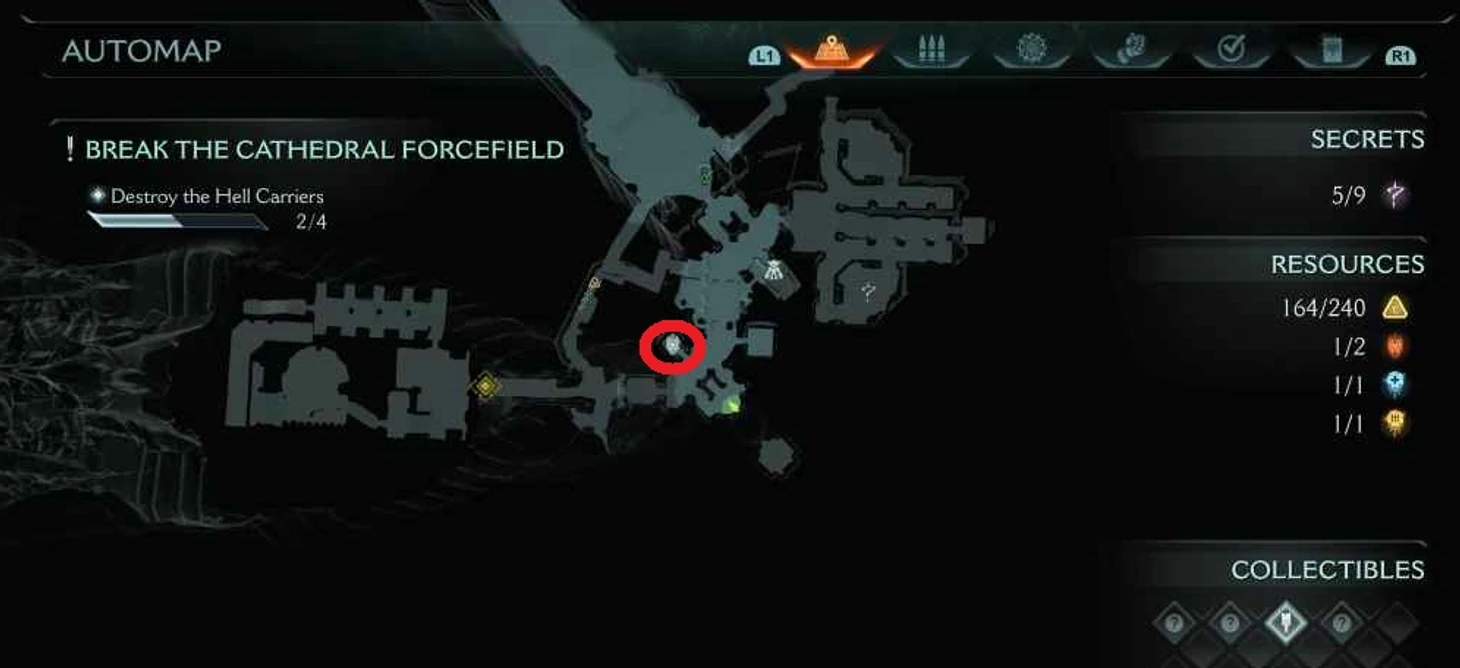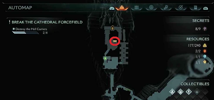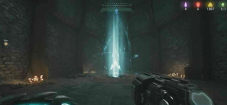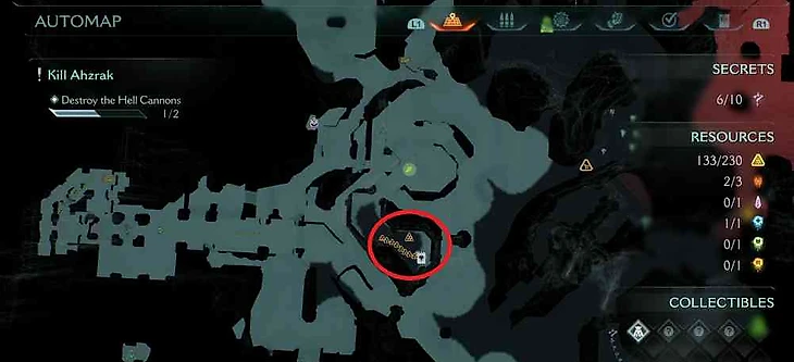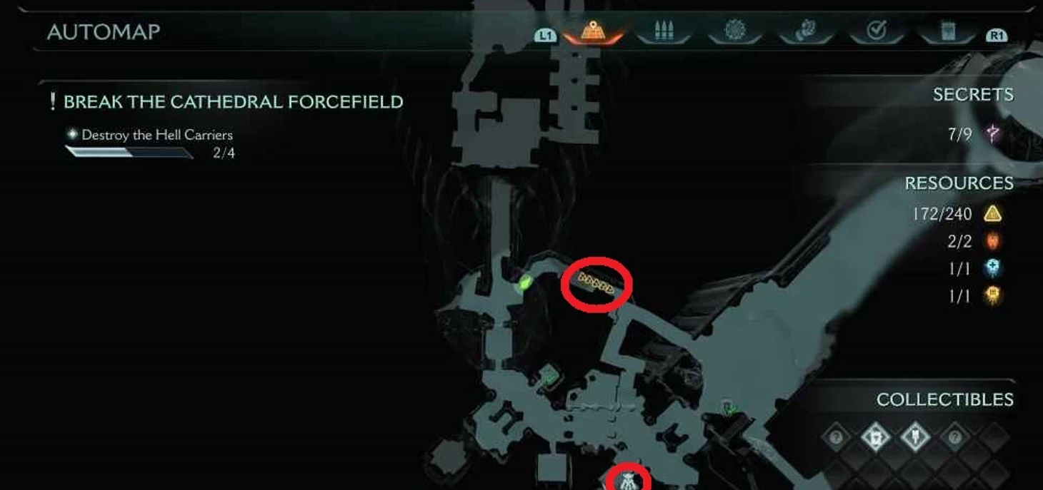 Вы окажетесь на просторной площадке, где предстоит закрыть четыре демонических портала. Двигайтесь по тропинке слева, пока не найдете капсулу с оружием Шреддера — его необходимо подобрать для дальнейшего прохождения. Взяв Шреддер, развернитесь и посмотрите налево: вы увидите площадку для прыжка. Спрыгните туда и подойдите к коллекционному предмету, окруженному барьером. Развернитесь и стреляйте по бочкам, чтобы расправиться с появляющимися демонами и забрать предмет.