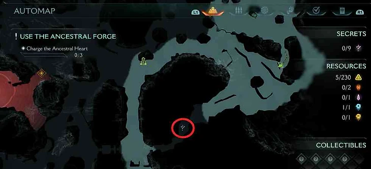 Оказавшись на выступе, оттолкнитесь от него, чтобы добраться до золота, а затем идите по тропинке. Воспользуйтесь трамплином, чтобы достичь тайного места через область с черепом.
