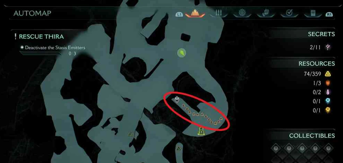 Вернитесь в область с центральной капсулой, пройдите мимо нее в соседнюю зону, куда можно спрыгнуть слева. Спуститесь туда, чтобы найти тайник и игрушку.