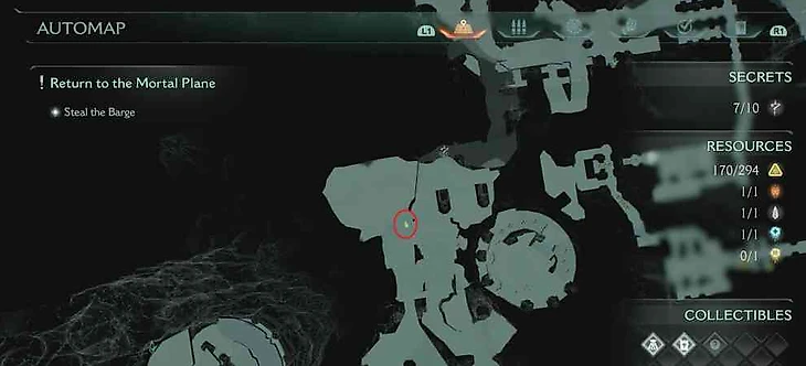 Забрав рубин, войдите в зеленый портал и плывите к затонувшему кораблю с зелеными предметами. Не проплывайте весь корабль, а сверните направо, чтобы найти секретную зону и запись в кодексе — один из трех подводных секретов.