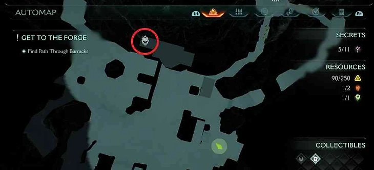 Взломайте дверь при помощи метания щита. Войдите, поверните налево, по тому же принципу взломайте еще один проход – там спрятан Знак Жизни.