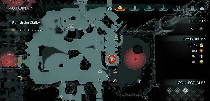 Продолжайте вперед, бросьте щит в красный замок, чтобы открыть дверь с культистами и волком. Уничтожьте четыре волчьи статуи, затем активируйте Камень Призрака и получите секрет.