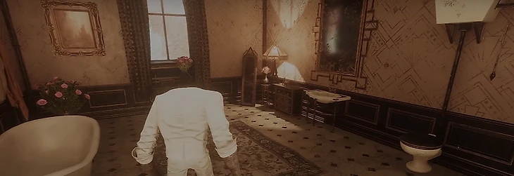 Внутри находится ванная комната, где основное внимание стоит уделить зеркалу, размещенному над раковиной. Оно повреждено: выстрелите в трещину, чтобы активировать скрытый механизм. Зеркало откроет проход в тайную комнату, где можно подобрать дополнительную форму здоровья.