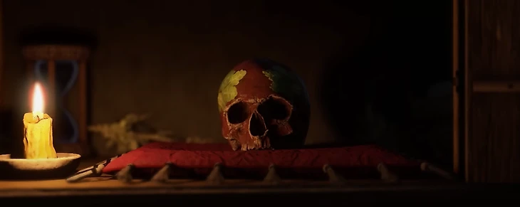 Если вы выбрали концовку с сожжением картины – череп не получите.