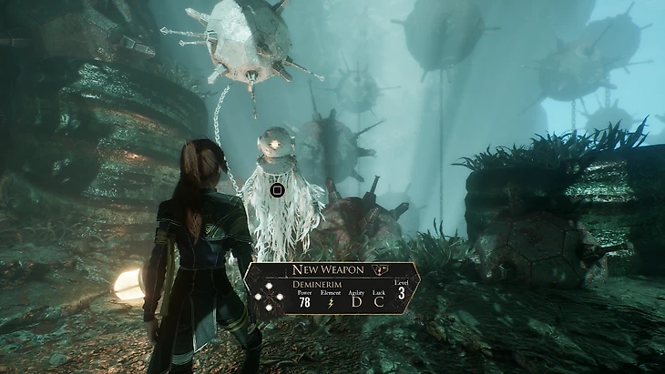 Окажется, что он потерял свою мину и вам нужно ее отыскать. Отправляйтесь на поиски, пройдите справа от Деминера и прыгайте через платформы на другую сторону. Там вы обнаружите целую мину, берите ее, возвращайтесь и отдайте неврону. В награду получите вооружение Деминерим. А если после помощи неврону убьете его, то станете обладателем Цвета Люмины.