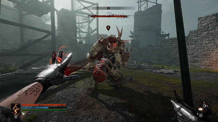 Разница в том, что бои в Tainted Grail в разы динамичнее. Здесь есть рывки, парирования и сложные боссы, атаки которых стоит заучить. Я однажды взял заказ на устранение огра. Здоровенный детина встретил меня на арене, заваленной трупами. Своей убийственной мощью он намекал: лучше бы прогуляться по миру и прокачаться. Я же вникал в мувсет, уклонялся от ударов, парировал внезапные броски камнями – и с шестой попытки все же уложил монстра. В итоге почувствовал себя рыцарем из Dark Souls и признал, что бои в польской игре веселее. В отличие от Skyrim, Fallout 4 и Starfield, ты постоянно в движении и побеждаешь не только мощью и убойными перками, но и скиллом, практикой, изучением врага. Если хорош, завалишь босса даже голым.